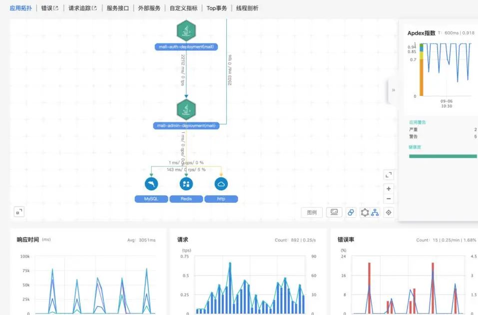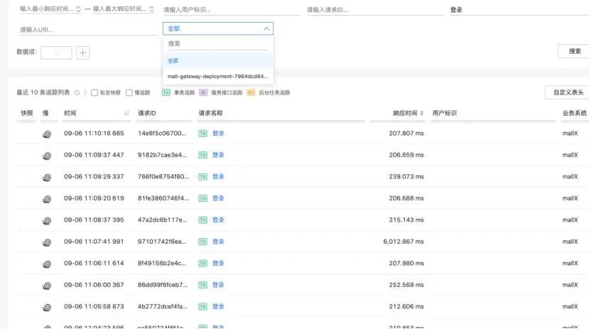 用戶訪問軌跡,可以看到每個用戶訪問系統(tǒng)的全過程以及是否發(fā)現(xiàn)性能問題,每一步都可以追蹤。