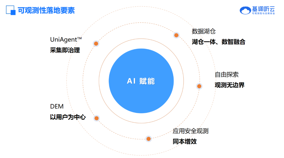 在北京閉門沙龍中,基調(diào)聽(tīng)云圍繞“高安全等級(jí)網(wǎng)絡(luò)環(huán)境下的可觀測(cè)性產(chǎn)品部署實(shí)踐”,系統(tǒng)展示了其統(tǒng)一平臺(tái)架構(gòu)、信創(chuàng)適配能力以及多維度實(shí)戰(zhàn)案例。其中,重點(diǎn)圍繞以下核心能力展開(kāi):