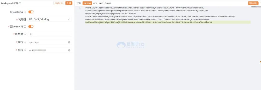 //?3.構造 RCE 鏈(如果有 cc 依賴或其他 RCE 依賴的情況下)通過 yakit 自帶插件 yso-java hack 生成混淆后的反序列化 base64 數(shù)據(jù)