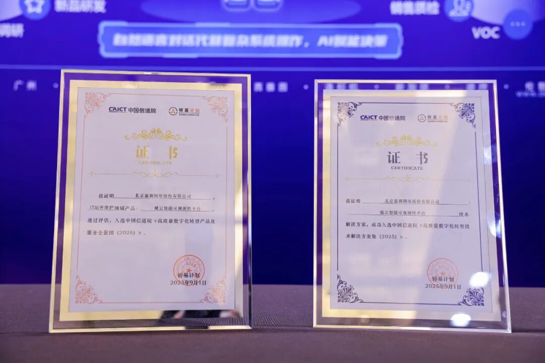 基調(diào)聽云「觀云智能可觀測(cè)性平臺(tái)」,憑借領(lǐng)先的技術(shù)創(chuàng)新與卓越的應(yīng)用實(shí)踐,成功入選中國(guó)信通院《高質(zhì)量數(shù)字化轉(zhuǎn)型產(chǎn)品及服務(wù)全景圖(2025)》與《高質(zhì)量數(shù)字化轉(zhuǎn)型技術(shù)解決方案集(2025)》,并在信通院鑄基計(jì)劃官網(wǎng)上線發(fā)布。