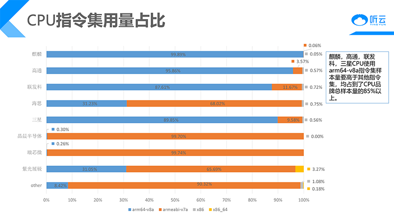 2021年4月份各大移動(dòng)應(yīng)用商店紛紛宣布,今后登陸應(yīng)用商店的應(yīng)用,必須有序支持64位ARM架構(gòu),按照要求,2021年年底前全體應(yīng)用和游戲,都要按計(jì)劃上傳含有64位構(gòu)建的APK。2022年8月底前,中國(guó)市場(chǎng)所有的移動(dòng)Android程序,必須全面普及64位,那么到目前為止各CPU品牌對(duì)于64位指令集的支持情況將成為非常關(guān)鍵的指標(biāo)。
